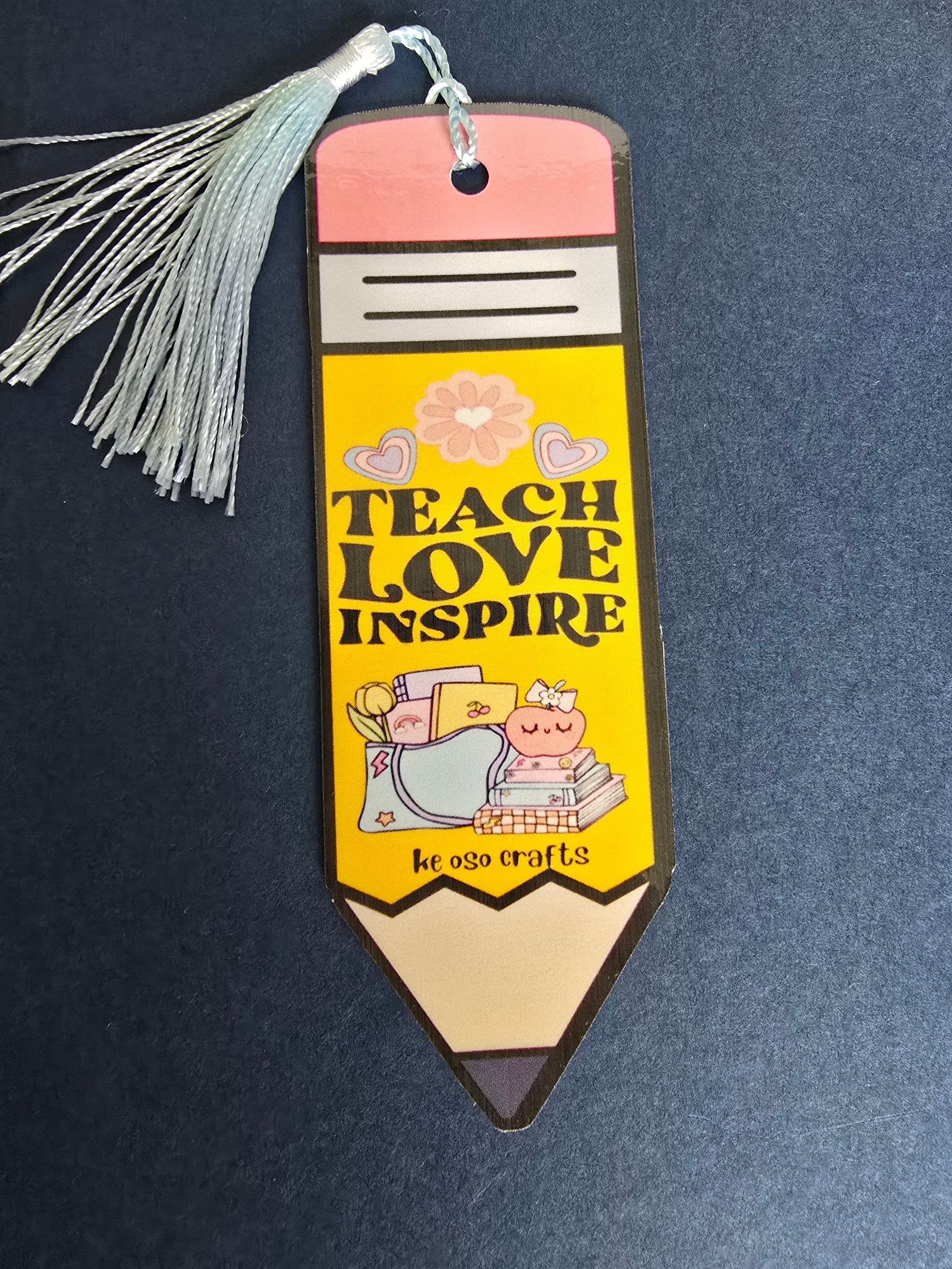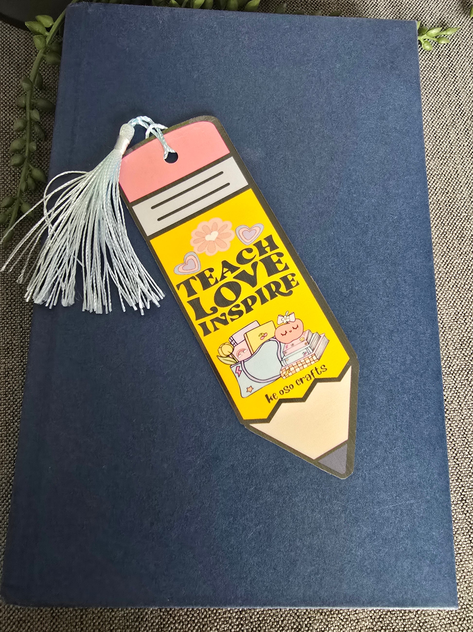 Laminated for durability (because life happens), shaped like a big ol’ pencil (adorable, right?), measures approximately 6" x 2", and comes with a tassel that may vary—just like your lesson plans on a full moon Friday.