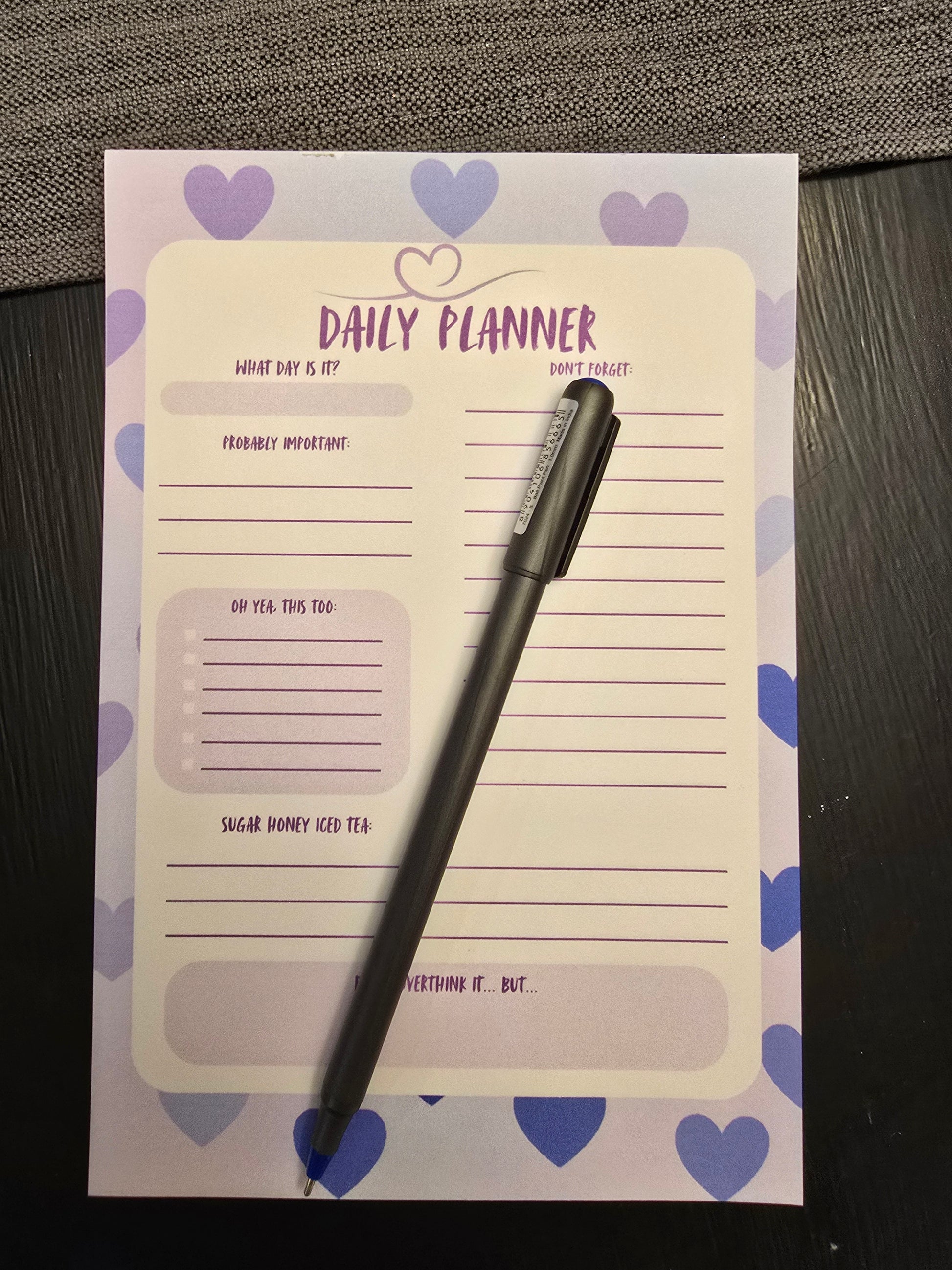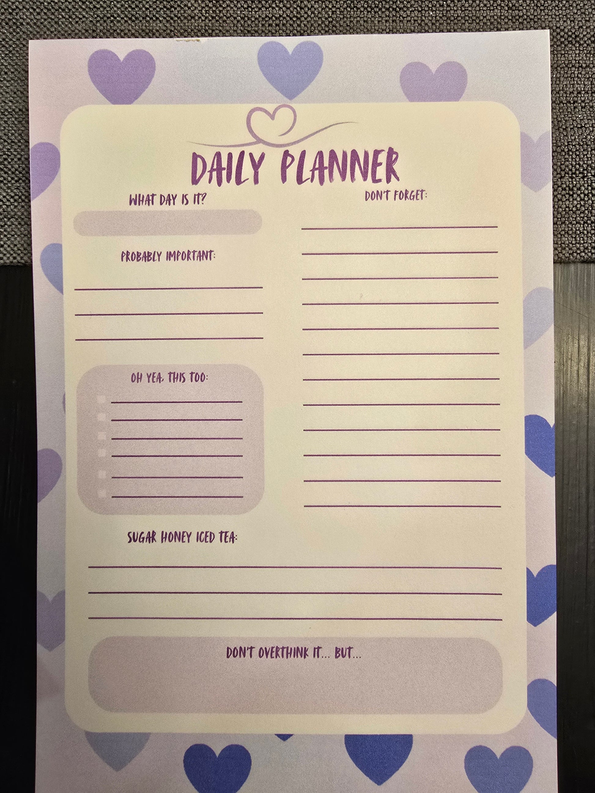 Daily Planner purple hearts. Mainly for things we keep forgetting and may or may not be important 😉