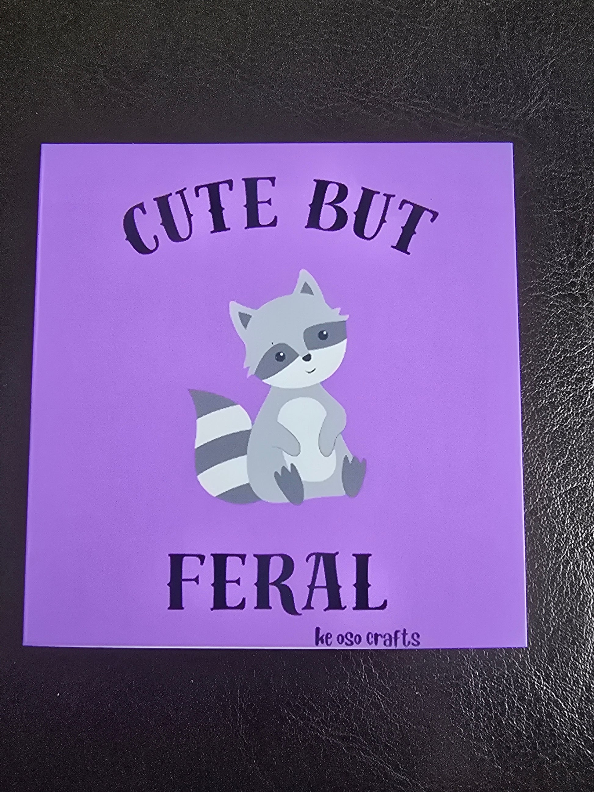 Soft on the outside, chaotic on the inside. This 3" x 3" magnet features an innocent-looking raccoon who's clearly up to something. With the phrase “Cute but feral,” it perfectly captures the duality of being sweet, slightly unhinged, and totally lovable.