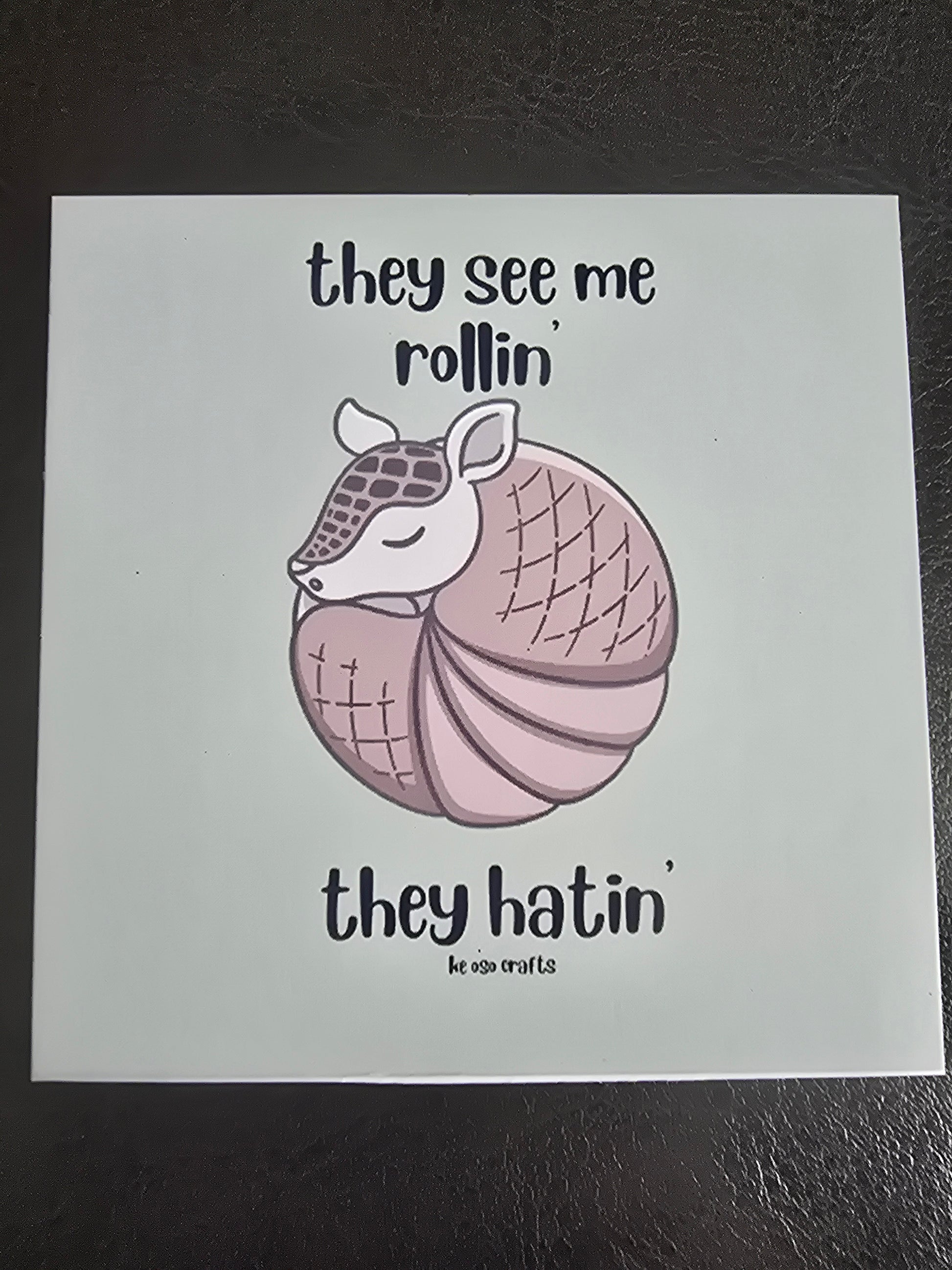 They see me rollin’, they hatin’—and this little armadillo knows it. Curled up in a perfect ball and full of sass, this magnet is the ultimate blend of cute, tough, and mildly chaotic. Perfect for animal lovers, meme fans, and anyone who's mastered the art of rolling through life with style.
