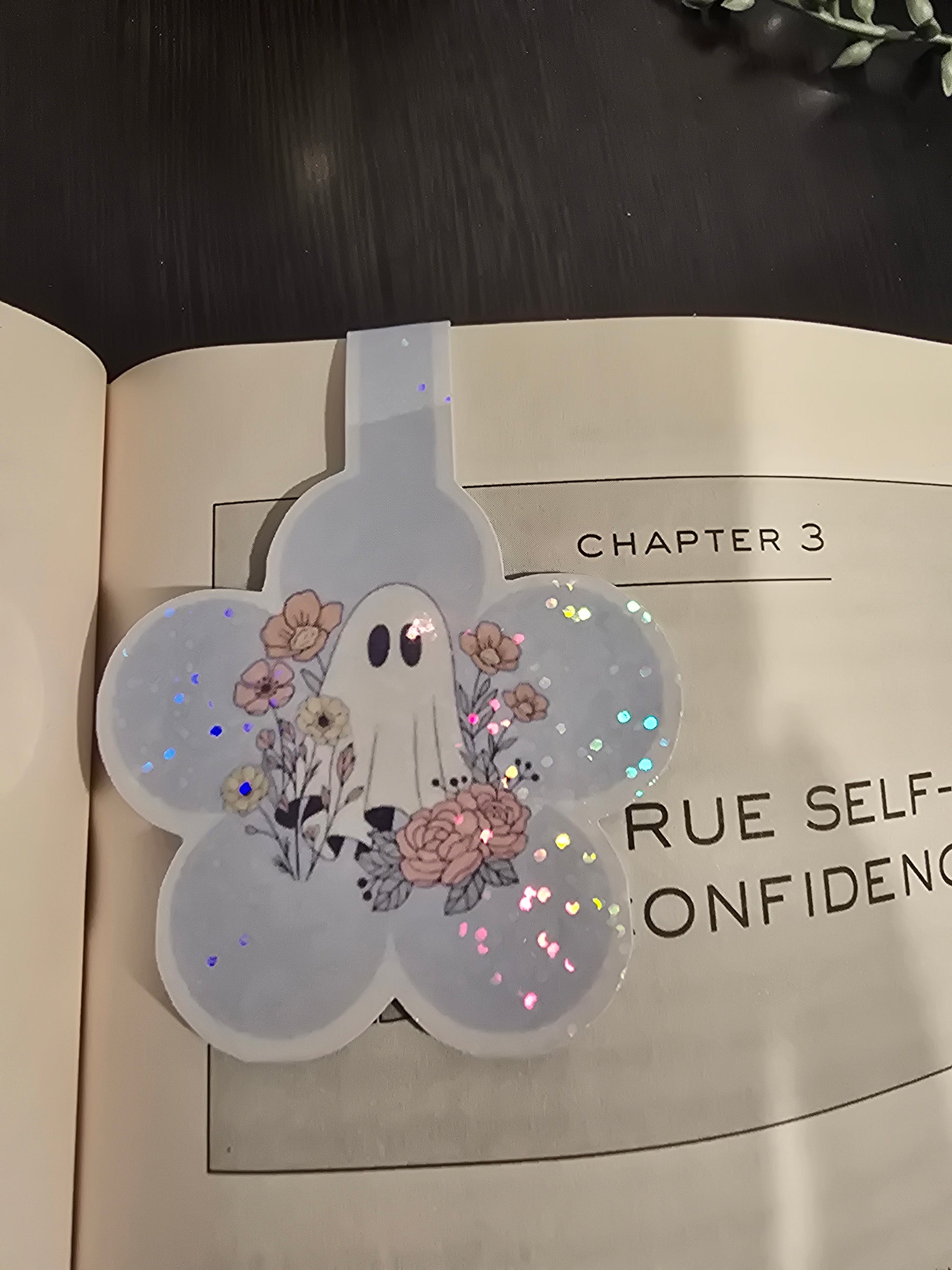 Magnetic Bookmark- Ghost with flowers π