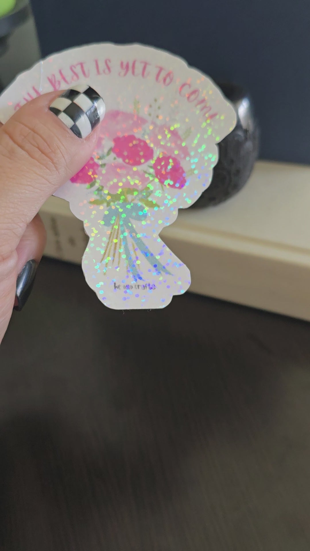 Sticker size: 3x3 inches. Vibe: Holographic hope with a sprinkle of positivity. ‘The Best Is Yet to Come’ features a beautiful bouquet of flowers, reminding you that no matter where you are right now, brighter days are ahead. It’s the perfect little boost for your laptop, water bottle, or journal—because sometimes, we all need a reminder that the future holds even more beauty, growth, and endless possibilities."