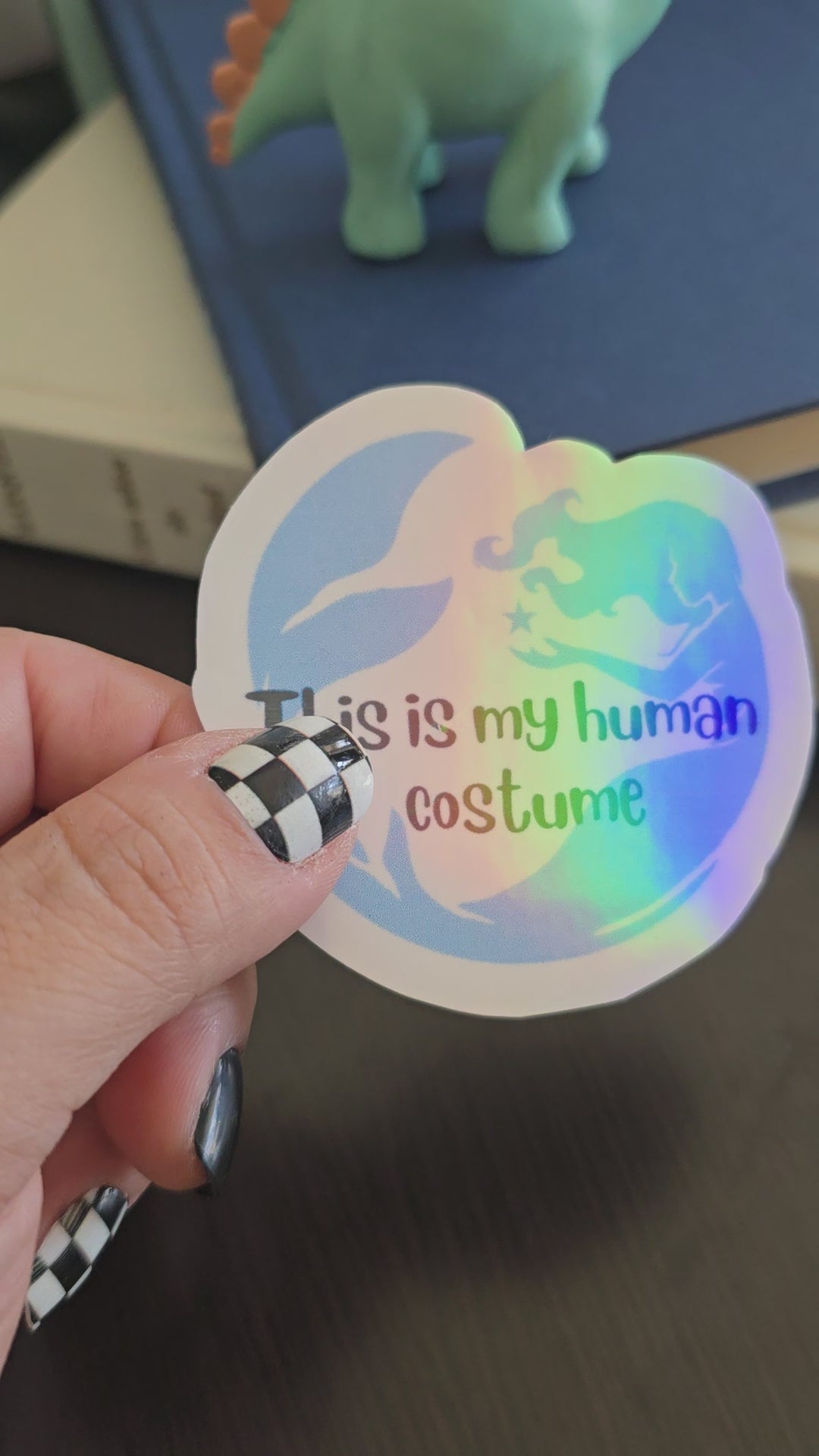 Sticker size: 2.5x2.5 inches. Vibe: Holographic magic with a sprinkle of ‘I’m not actually a human.’ This sticker features a mermaid casually revealing the truth—this is her human costume. Because why be ordinary when you can be a mystical creature just passing through the land of humans? Perfect for the mermaid (or anyone with a secret identity) in your life!