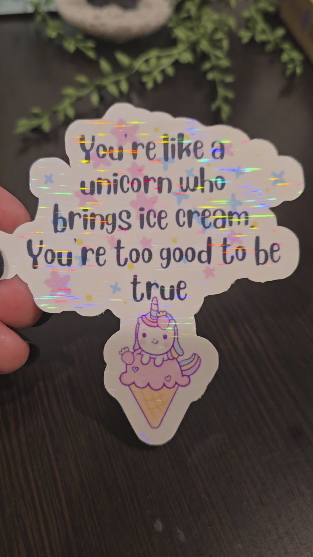 Sticker- You're like a unicorn who brings ice cream. You're too good to be true